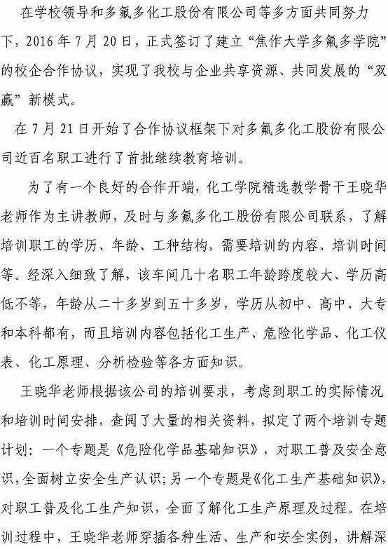 williamhill官方网站与多氟多化工股份有限公司校企合作跨出第一步