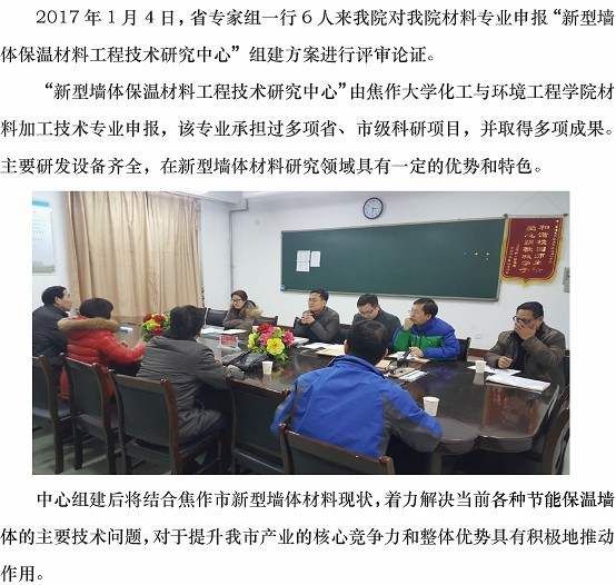 专家组来williamhill英国威廉希尔论证“新型墙体保温材料工程技术研究中心”组建方案