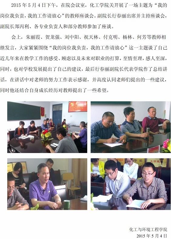 williamhill英国威廉希尔开展主题为“我的岗位我负责,我的工作请放心”的教师座谈会