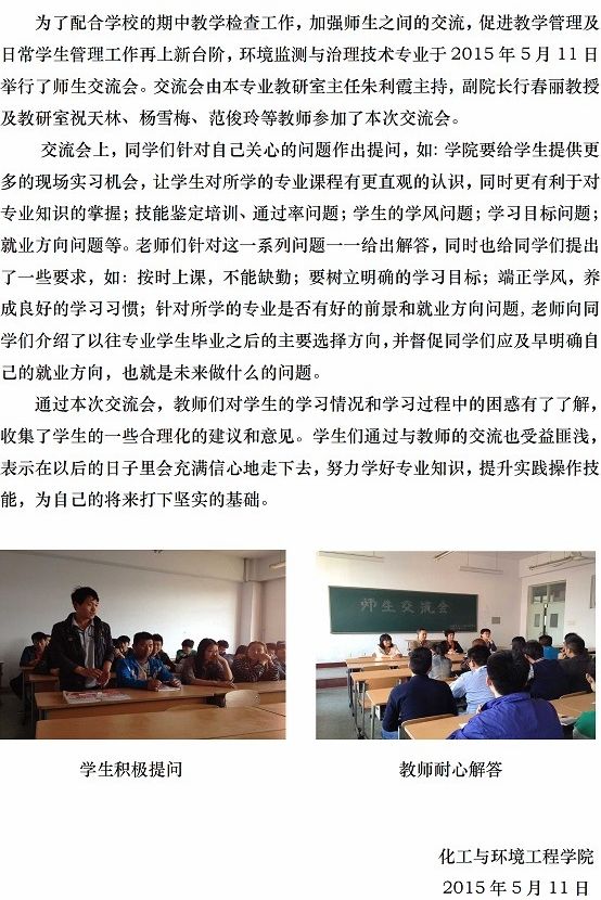 williamhill英国威廉希尔环境监测与治理技术专业举行师生交流会