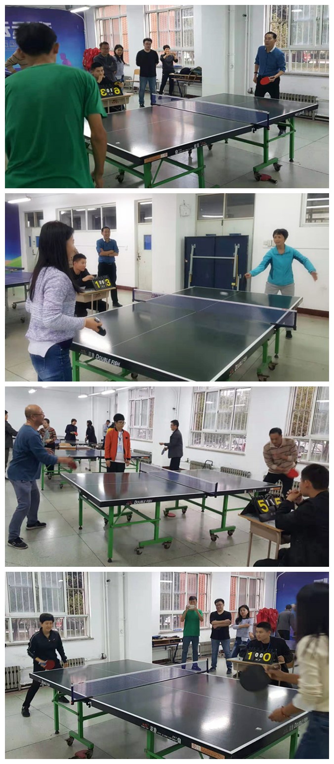 本次比赛采用三局二胜制。乒乓球作为中国的国球,普及率很高,虽然大家平时没有经过专门的训练,但是都能信手拈来,所以此次比赛也非常激烈。比赛在众多势均力敌的队员之间进行。直拍、横拍、杀球、旋球、弧旋球等应有尽有,比赛中不时传出热烈的喝彩声,“好球”声不断。运动员们在比赛过程中,挥汗如雨,积极拼搏,不到最后一刻决不放弃的精神深深地感染着在场的每个观众,本次比赛在一片和谐欢呼中圆满结束。