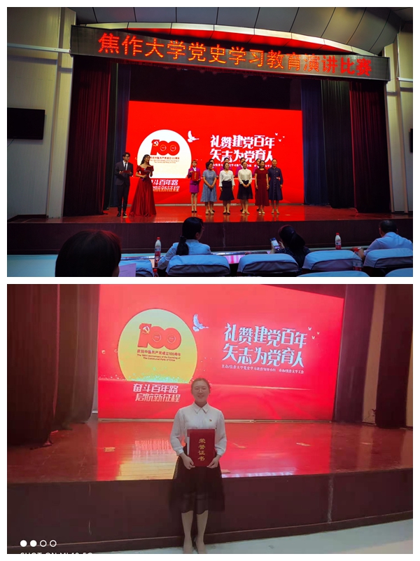 公司董蒙蒙老师在公司“礼赞建党百年 矢志为党育人”教职工演讲比赛中获奖