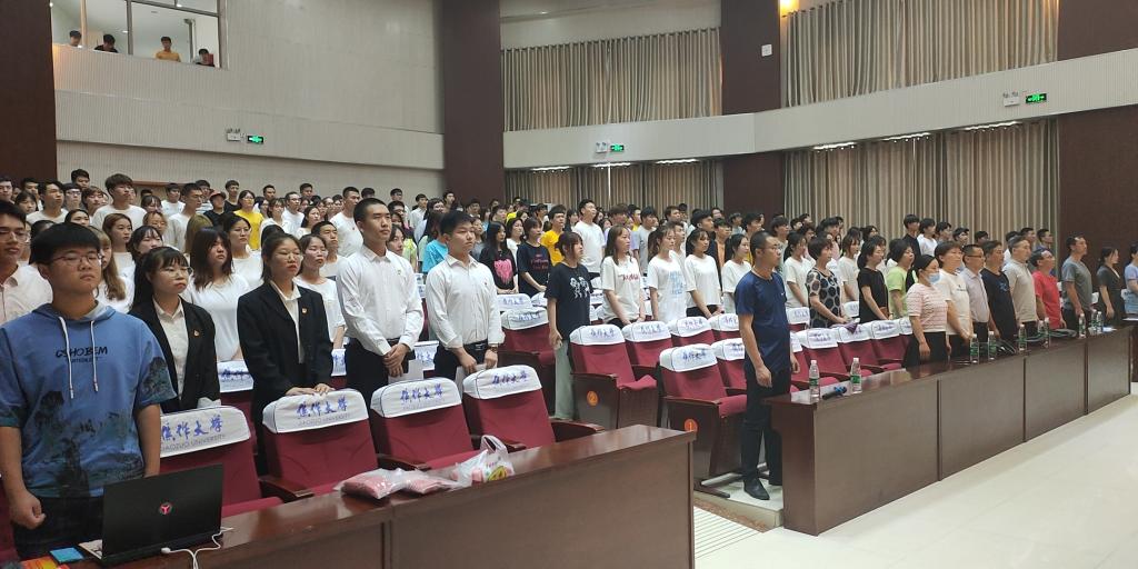 典礼开始,全体起立凑唱国歌。院员工合唱队演唱红歌为师哥师姐们践行。随后,优秀毕业生上台领奖,毕业生代表、在校员工代表、教师代表相继上台发言。