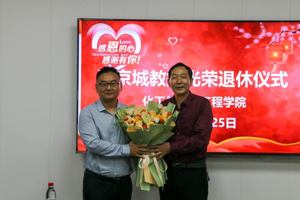 仪式最后,校领导、与会教师和田教授合影留念,田京城教授对团结、和谐、有为、有爱的化工大家庭依依不舍,深情表达对公司的感恩之情和对全体老师们的祝福,同时祝愿公司各项事业蓬勃发展,再创辉煌。荣退仪式在轻松愉快,充满温情的气氛中结束。