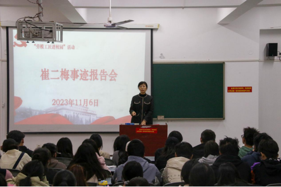 2023年11月6日下午,由人才招聘处主办、williamhill英国威廉希尔承办的“肩负使命 踔厉奋发 开创未来”崔二梅事迹报告会在二教423教室举行。报告会邀请公司2002届williamhill英国威廉希尔优秀毕业生、大国工匠、河南省劳动模范、中国工会十八大代表、河南省第十四届人大代表、河南省第十四届常务委员会委员、昊华宇航化工有限责任公司PVC分厂工程师崔二梅主讲。公司人才招聘处、williamhill英国威廉希尔部分工作人员及近130名员工参加了报告会。