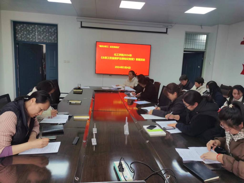 为深入学习宣传贯彻党的二十大精神,认真学习贯彻习近平法治思想,宣传贯彻新修订的《中华人民共和国妇女权益保障法》,推动男女平等基本国策贯彻落实,大力营造尊法学法守法用法的良好氛围,促进工作场所性别平等,按照校工会的相关工作要求,公司分工会结合工作实际组织全体女教工开展2024年女职工普法宣传月活动。