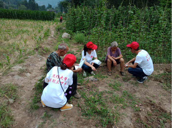 为加强新农村建设,了解农村环境污染情况,williamhill英国威廉希尔“三下乡”青年志愿者深入到焦作市后寨展开为期六天的社会实践活动,在田间地头,通过与当地农民座谈,走访调查,发放问卷调查表等多种方式,发现了河流、土地、生活垃圾、农药、饮用水水源等环境污染问题。了解到了村民们将生活垃圾直接倒在路边或空地上,而为了农作物的产量,村民们相对于环保更注重农药的效果。由于建立水电站及铁路而改变丹河河道,导致水土流失及淹没长有树木的土地,迫使树木淹死。而且因没有完善的污水处理系统致使水体富营养化严重,藻类横生,鱼儿受到水质污染而死等现象。在了解到村民们对环保知识的匮乏后,志愿者们积极主动向村民普及环保知识,如:垃圾如何分类,农药瓶的处理等。