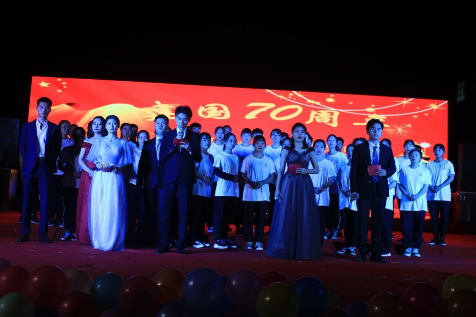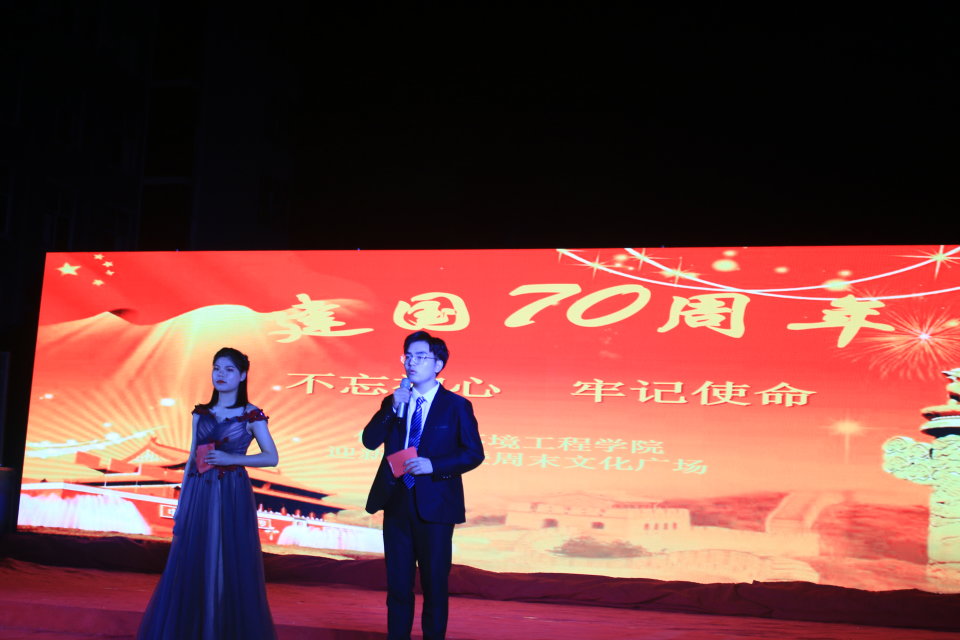 10月18日晚上七点,williamhill英国威廉希尔庆祝新中国成立70周年“不忘初心 牢记使命”迎新晚会暨周末文化广场在和谐广场举行,公司党总支书记田京城、经理苏永祥、副经理行春丽、学工办主任及辅导员和全体员工观看了晚会。