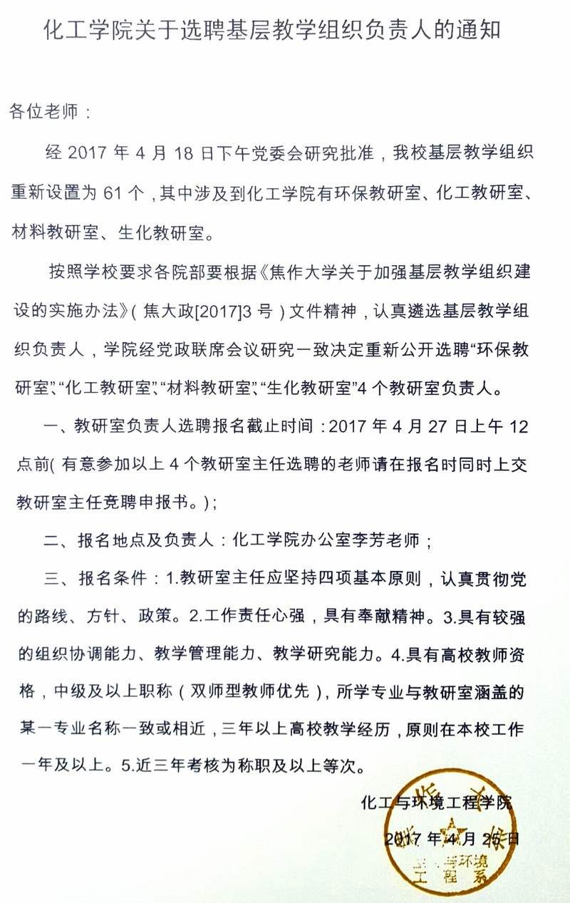 williamhill英国威廉希尔教研室负责人选聘人选公示