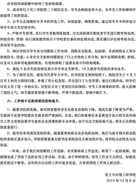 2016年 化工与环境工程 公司(部)工作目标