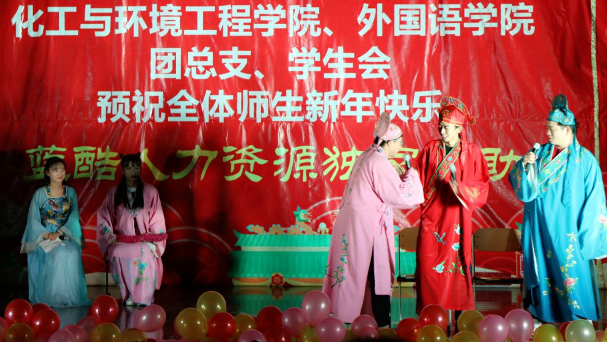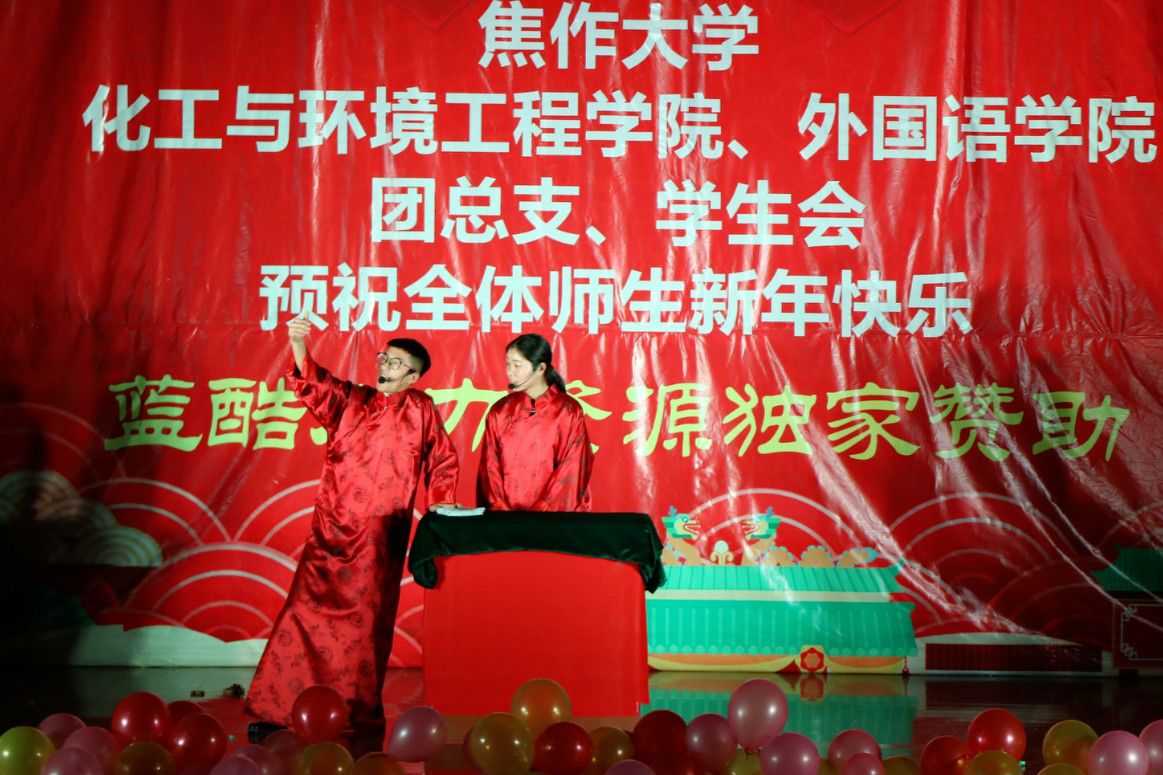 晚会上同学们通过舞蹈、歌曲、小品、相声等形式,尽情演绎了对美好生活的赞誉,歌颂我们祖国伟大的繁荣昌盛,师生在一片欢声笑语中迎接新年的到来。