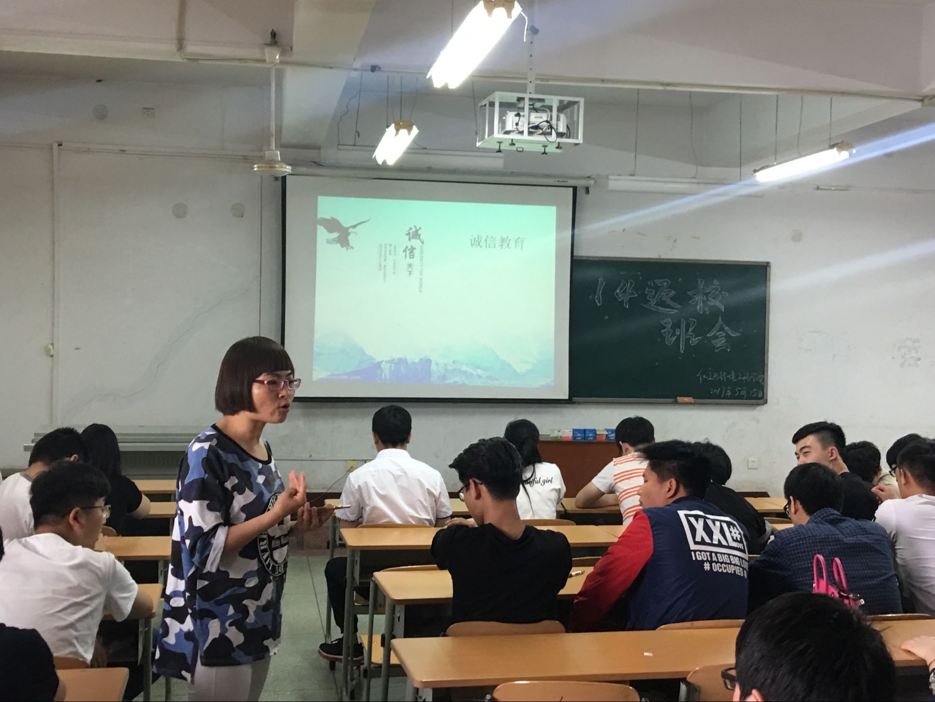 班会开始由副经理郑丙利给同学们进行安全教育、文明离校教育、诚信教育等。郑经理要求毕业生离校期间要遵守法纪法规、校纪校规,严禁酗酒,做到文明有序,爱护公共财物,防火防盗,注意人身和财产安全。然后由王小爱老师给同学们说离校流程以及开展诚信教育。加强毕业生的诚信意识,正确引导未缴费生及贷款生及时办理缴费和还贷手续。要求同学们自身行为规范防患于未然。