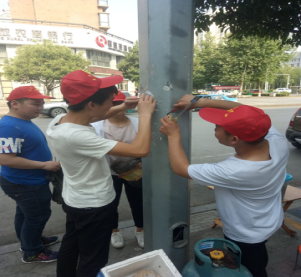 下午,williamhill英国威廉希尔青年志愿者按照要求拿着清除小广告用的劳动工具来到亿祥社区壹里洋场,将墙上,电线杆上等地方的广告纸进行清除,在烈日炎炎下,同学们不怕热、不怕累,不放过任何一处,认真清理,直到干净为止。