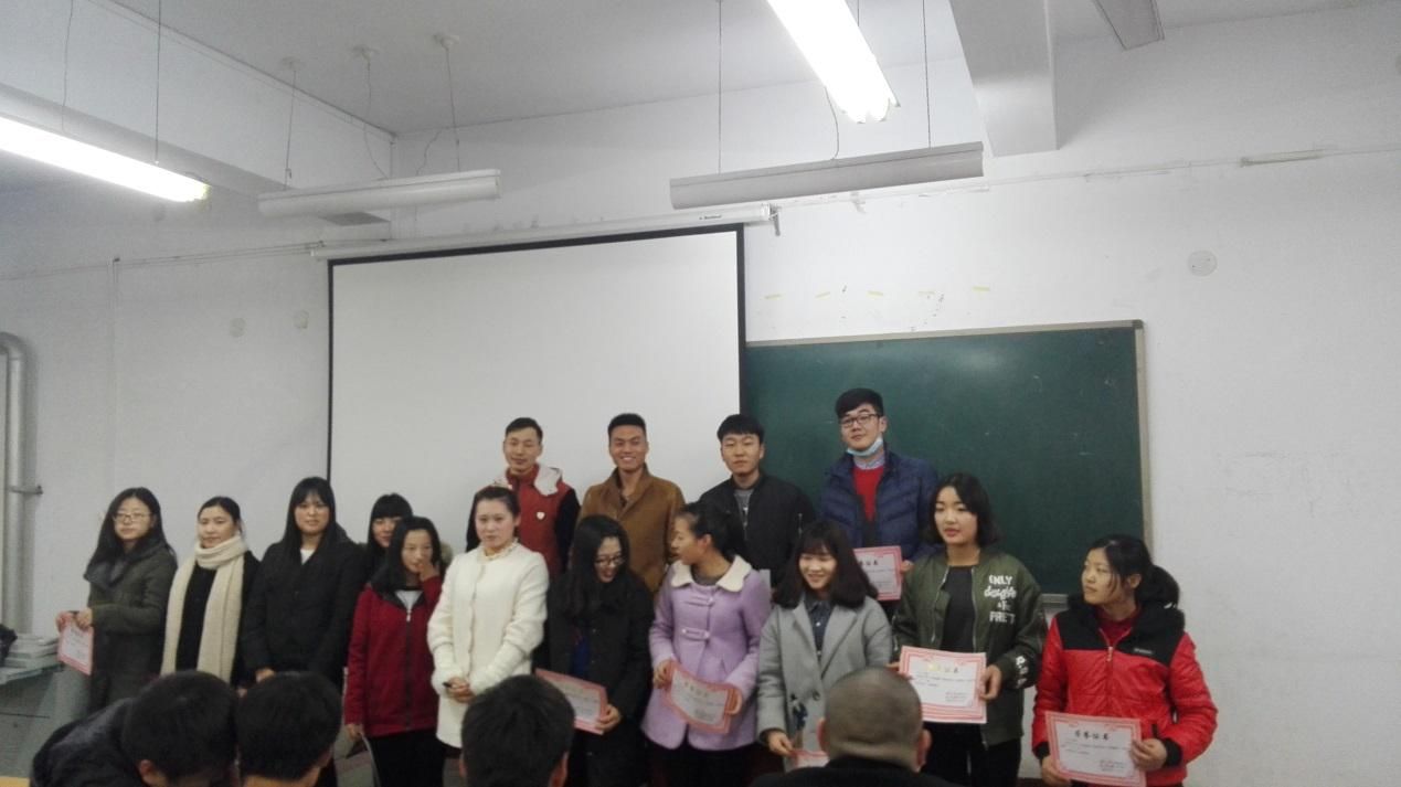 最后,williamhill英国威廉希尔辅导员董蒙蒙老师与团副贾英杰为获奖同学颁奖,并与同学们合影留念,在一片欢声笑语中愉快的结束了这次活动。