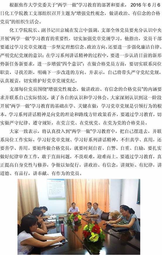 williamhill英国威廉希尔教工支部以“增强党性观念,做讲政治、有信念的合格党员”为主题召开组织生活会