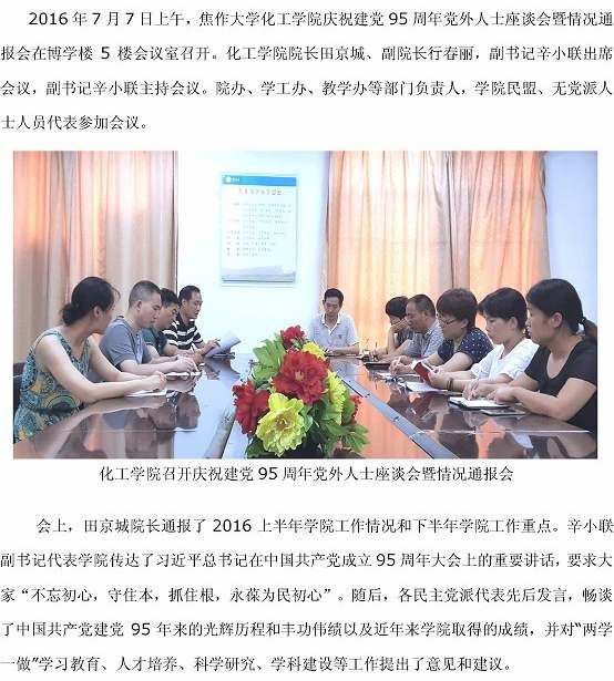 williamhill英国威廉希尔庆祝建党95周年党外人士座谈会暨情况通报会召开